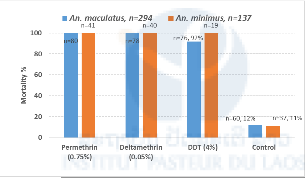 Figure 8. Resistance status of An. maculatus and An. minimus against permethrin, deltamethrin and DDT, Attapue province, Lao PDR 2014.